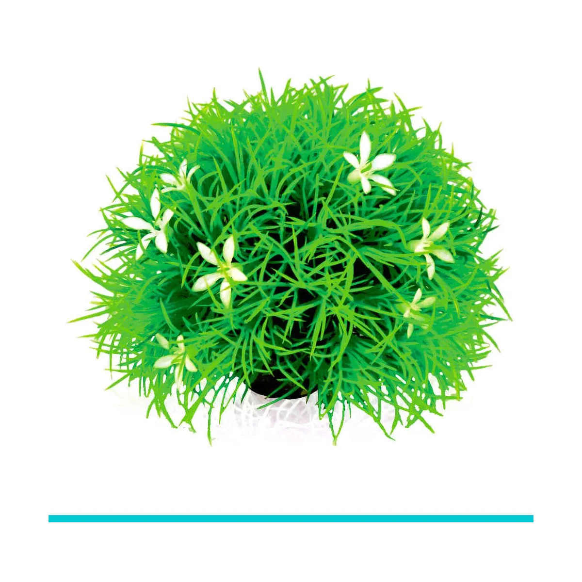 biOrb - 46086 roślina wodna w kształcie kępy trawy z drobnymi delikatnymi kwiatkami zaprojektowana przez Samuela Baker. Dopracowane niemal do perfekcji szczegóły, różnorodność zastosowanych barw i odcieni nadają tej sztucznej ozdobie wodnej niezwykłego charakteru i wyglądu naturalnej rośliny. Kępa delikatnej trawy z wplecionymi drobnymi kwiatkami w prosty ale efektowny sposób uatrakcyjni akwarium. Ozdoba akwariowa wykonana jest z materiałów bezpiecznych dla organizmów żywych, rośliny wykonane są z delikatnych materiałów nie wywołujących zranienia ryby tak jak to ma miejsce w przypadku roślin sztucznych wykonanych z twardego plastiku, dlatego sztuczne rośliny biOrb nie tylko spełniają funkcję ozdobną ale również zapewniają odpowiednie środowisko do życia i rozmnażania ryb akwariowych.