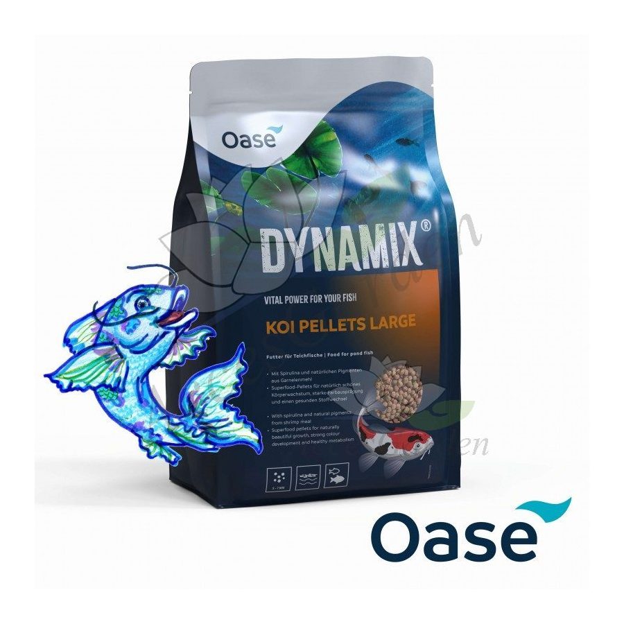 OASE DYNAMIX Koi Pellets Large 20 l pelet o rozmiarze 4-5 mm dla dużych koi to zbilansowana podstawa żywieniowa dla karpi koi o długości ciała powyżej 20 cm. Super-Food-Pellets ze spirulą, mączką sojową i sfermentowanym czerwonym ryżem to najlepsza karma na rynku zdrowe i witalne ryby w oczku wodnym to nasz cel nr 1 OASE pewność i zaufanie hodowców karpi Koi.