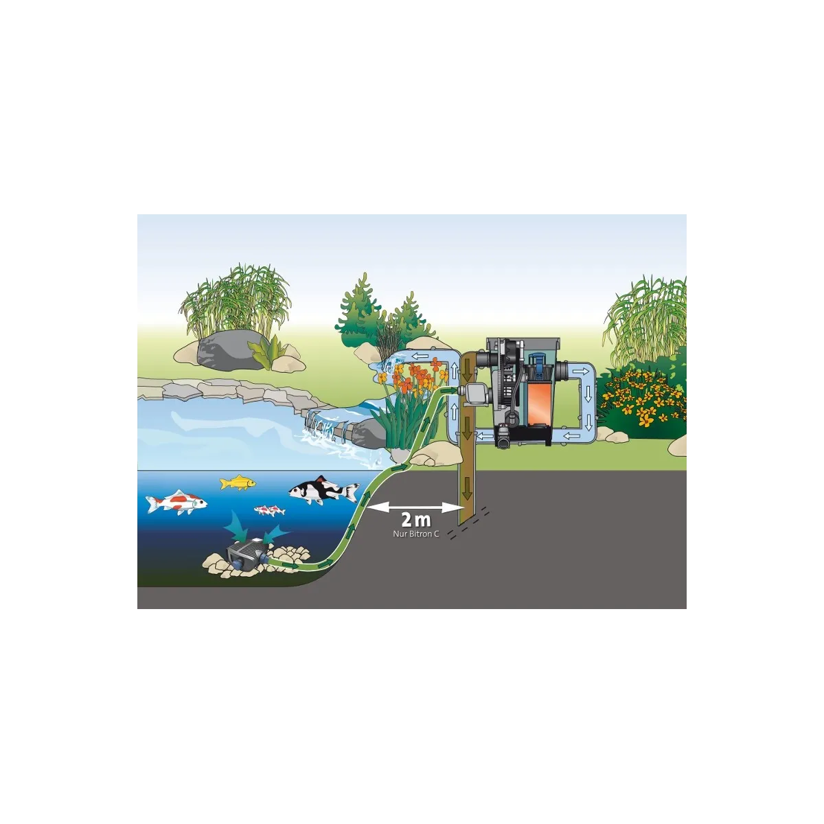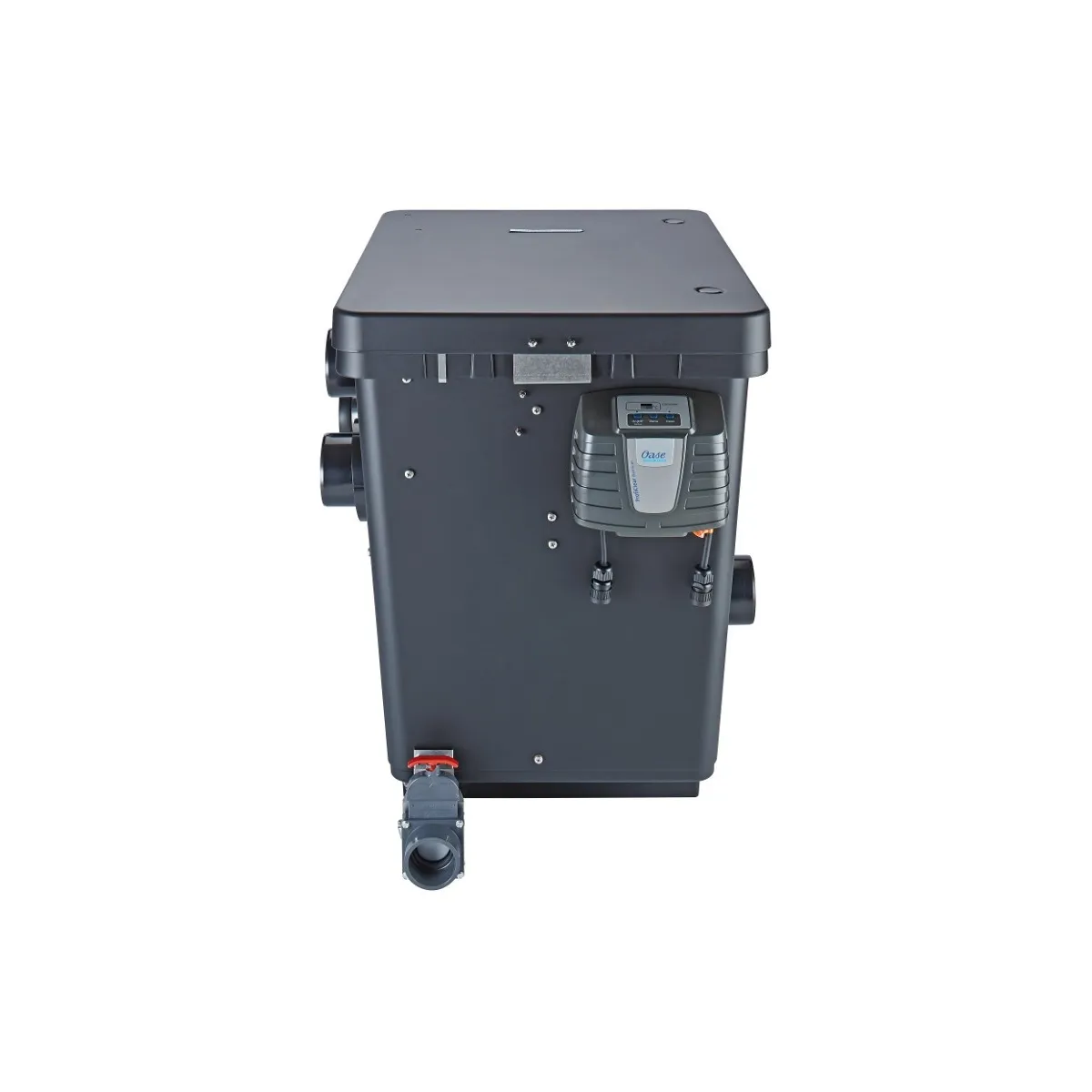 Imponującą wydajność filtra połączona z inteligentnymi funkcjami kontrolnymi automatycznego systemu oczyszczania nie pozwala na tzw. przelanie wody przez pokrywę górną filtra przepływowego dzięki zintegrowanemu czujnikowi poziomu.