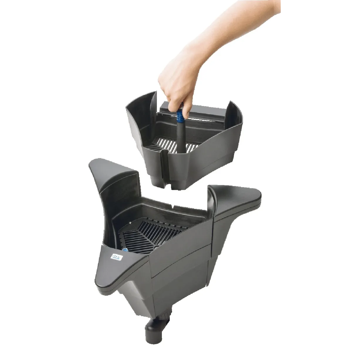 Skimer pływający Oase jest idealnym rozwiązaniem które zapobiega opadaniu na dno oczka wodnego liści, igliwia, pyłków kwiatowy i innych zanieczyszczeń. Zanieczyszczenia te po pewnym czasie nie zebrane z powierzchni lustra wody oczka wodnego opadają na dno i tam podlegają procesom rozkładu uwalniając do oczka wodnego substancje odżywcze dla alg i glonów. Skimer Oase Swim skim 50 ściąga cząsteczki z powierzchni oczka wodnego do kosza w którym się gromadzą. W ten sposób z ekosystemu oczka wodnego zostają usunięte zanieczyszczenia, zanim zdążą ulec procesowi rozkładu, uwalniając związki fosforu i azotu. Już po krótkim czasie stosowania skimera widać zdecydowaną poprawę jakość wody i przezroczystość. Należy pamiętać , że aby skimer Oase spełniał swoją rolę musi być odpowiednio dobrany do wielkości lustra oczka wodnego. Jeżeli oczko wodne jest zbyt duże lub otoczone jest dużą ilością drzew liściastych skimer z małym koszem zbyt szybko będzie ulegał zapełnieniu i nie będzie spełniał właściwie swojej roli.