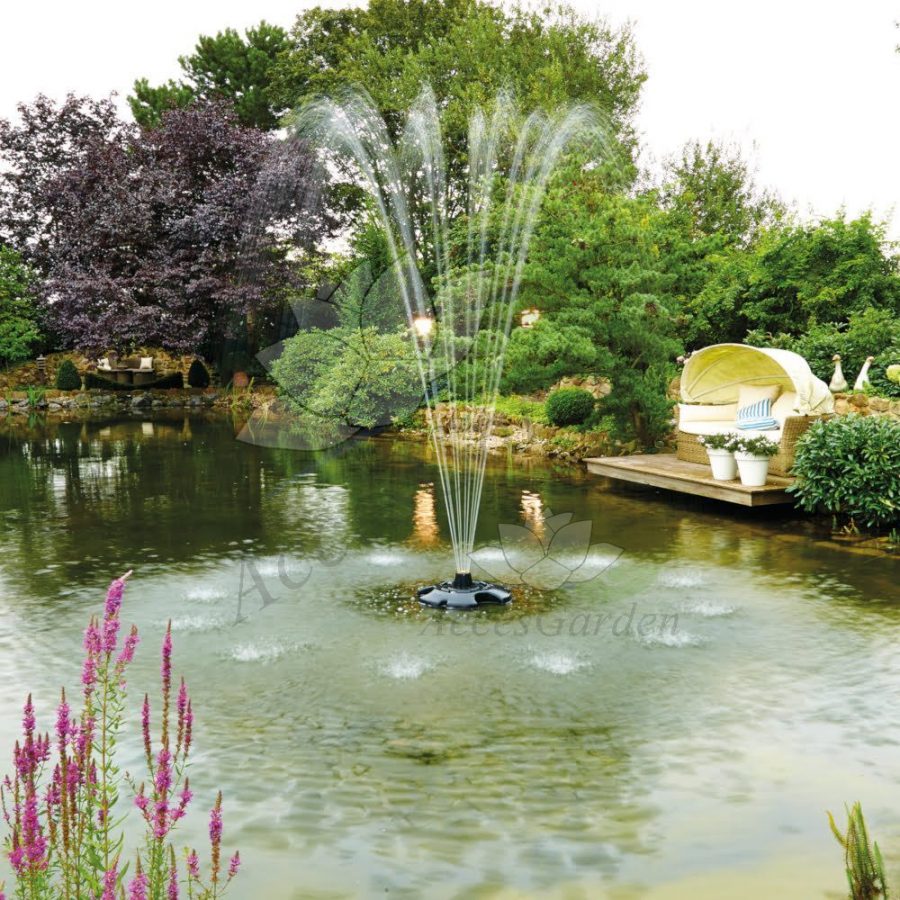 Fontanna pływające PondJet Eco Premium wyposażona w dyszę Vulkan.
