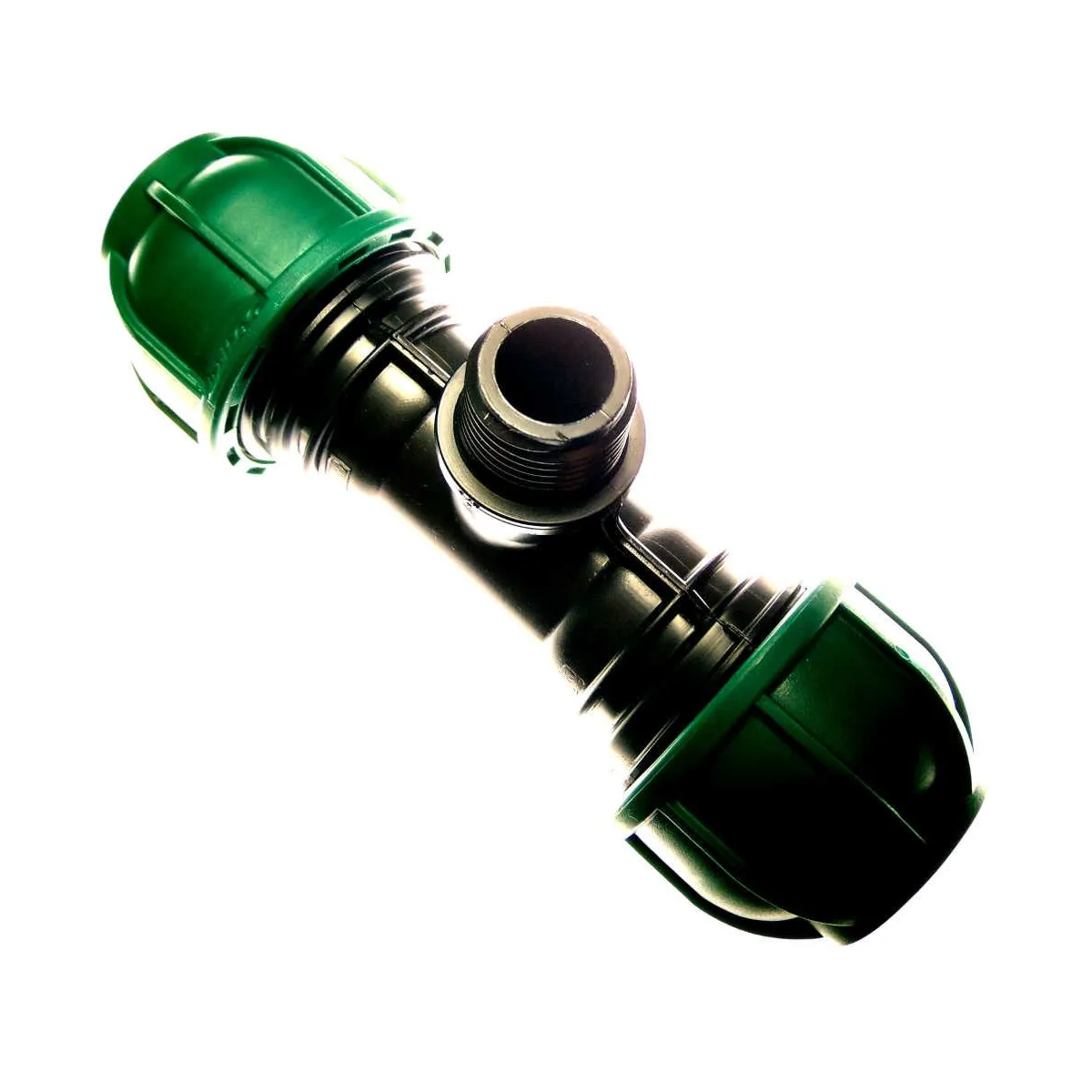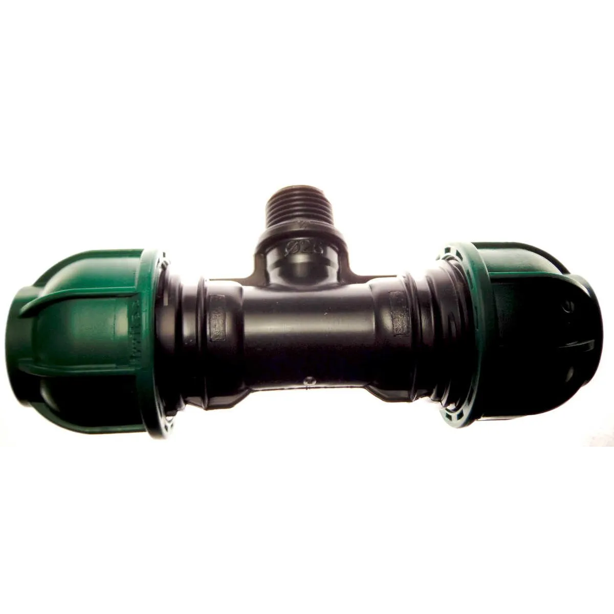 Trójnik 25-1/2"-25 gwint zewnętrzny skręcane wykonane z PP marki IRRITEC do rury z PE. Trójnik wykorzystywany w przypadku gdy decydujemy się na najprostszy sposób montażu zraszaczy czyli montażu bezpośrednio na rurze. Zraszacze zostają wkręcone bezpośrednio do trójnika.