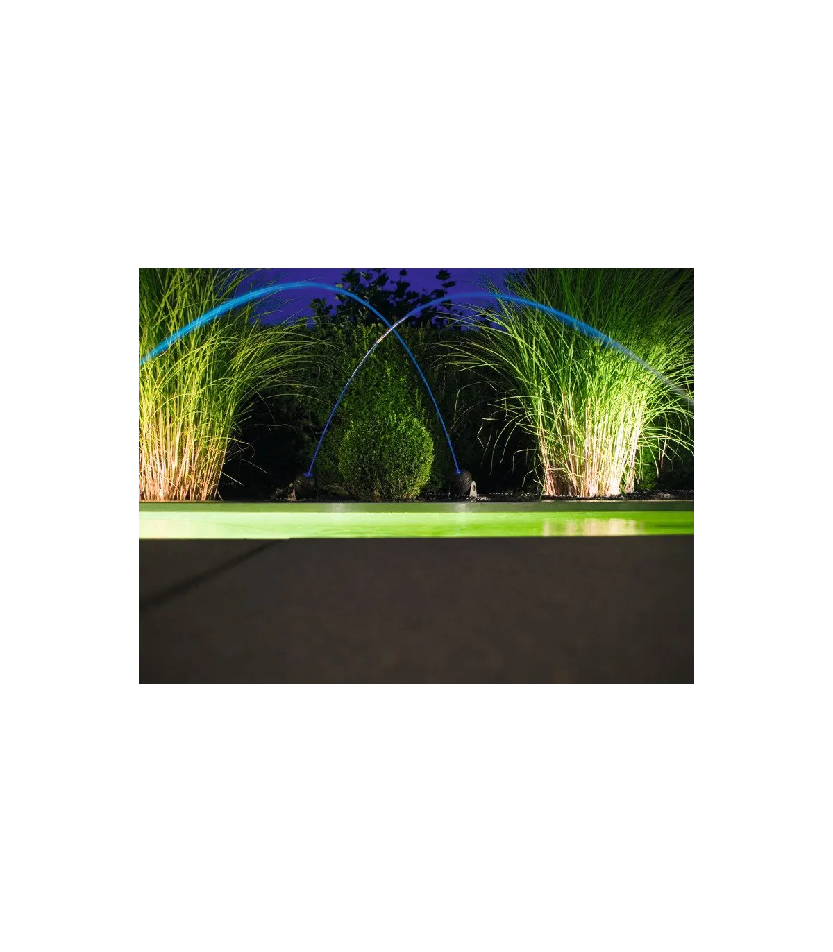 Water Jet Lighting OASE - Nowoczesny zestaw fontannowy o wysokiej funkcjonalności przeznaczona do oczka wodnego stawu kąpielowego lub ogrodu. Water Jet Lighting jest kompaktowym zestawem fontannowym składającym się z dyszy wodnych z oświetleniem RGB oraz pompy zasilającej zestaw. Nowoczesny design pozwalający tworzyć różno kolorowe (RGB) laminarne łuki wodne wysoko nasycone barwą. W nocy wyglądające jak ciekłe strugi szklane zmieniające barwę. Water Jet Lighting posiada również wbudowane programy dynamiczne o zmiennej charakterystyce obrazu wodnego, który możemy zmieniać i regulować pilotem. Zestaw posiada wbudowane programy sekwencyjne zarówno bardzo dynamiczne i zmienne oraz programy dostosowane do naszego nastroju o spokojniejszej dynamice i harmoniczne. Pilot sterujący Water Jet Lighting ma zasięg do 80 m w otwartej przestrzeni ogrodu. Produkt Water Jet Lighting jest jednym z niewielu produktów dostępnych na rynku Polskim łączącym wysoką jakość, funkcjonalność, dynamikę oraz doskonałą cenę.