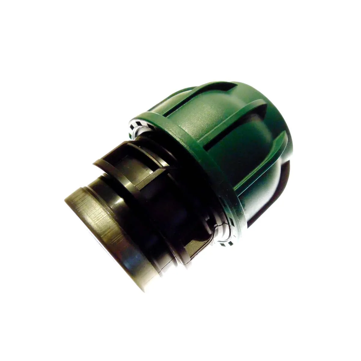 Złącze 75-2,5" skręcane wykonane z PP marki IRRITEC z gwintem wewnętrznym do rur z PE .Złączki skręcane do rur lub też inaczej mówiąc złączki zaciskowe do rur PE są bardzo ważnym elementem systemu nawadniającego szczególnie wtedy kiedy nie osiągnęliśmy jeszcze zamierzonego kształtu rabat a ogród jest jeszcze w budowie lub robimy nawadnianie etapami i będziemy dokładać sekcje w przyszłości. Wtedy złączki będziemy kilka razy rozkręcać i skręcać ważne jest wtedy aby wybrać złączki takiego producenta które łatwo się demontują nawet po roku leżenia pod ziemia. Nie jest to żaden problem jeżeli stosuje się odpowiednie zarysy gwintu w nakrętkach i odpowiednie luzy.
